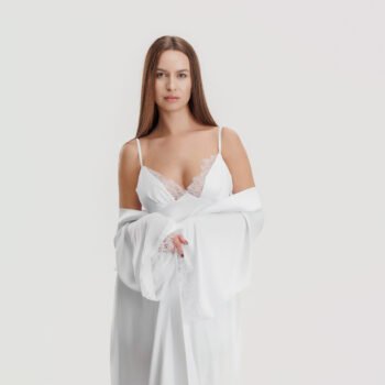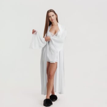 Riri set halat alb și cămasă de noapte