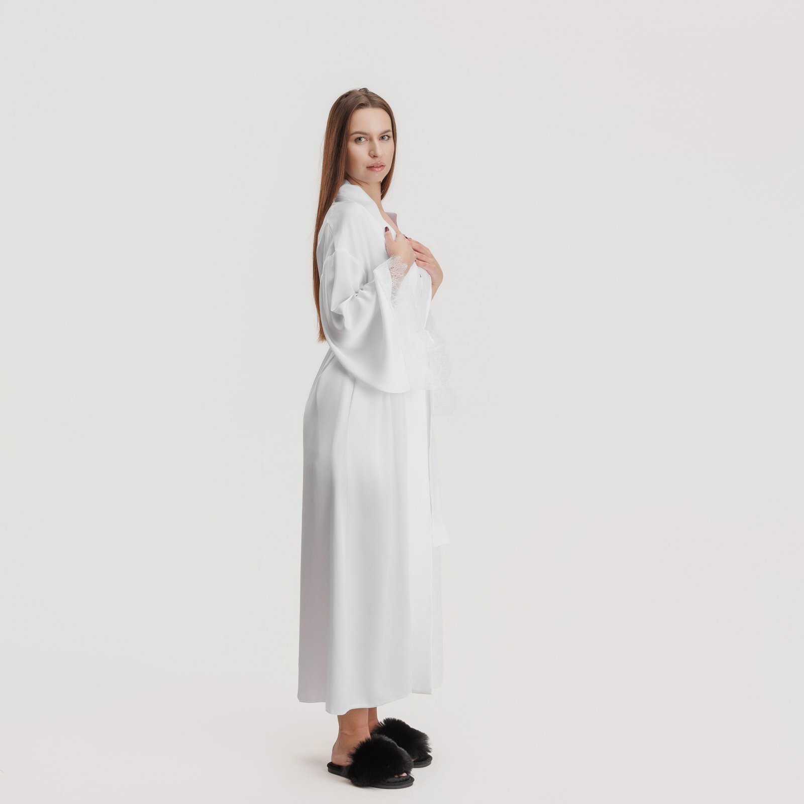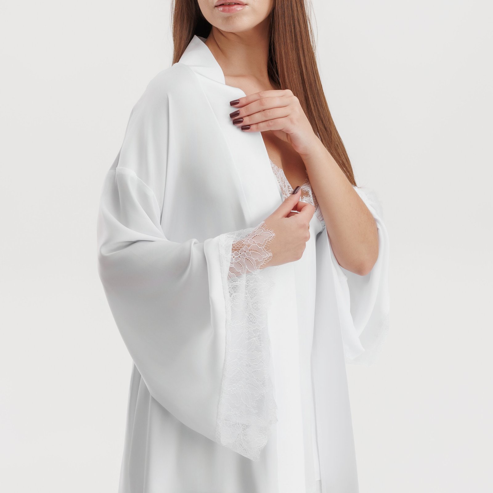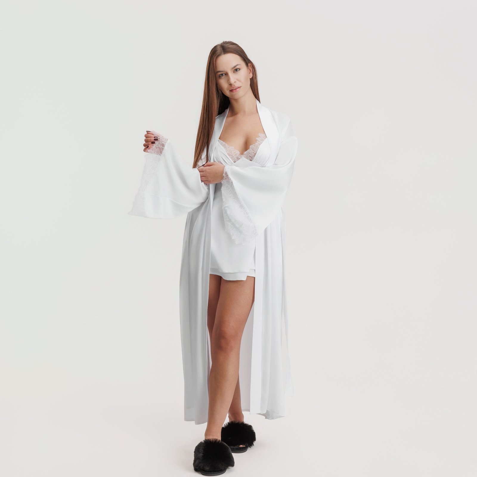 Set halat alb și cămașă de noapte cu dantelă – rafinament și finețe la tine acasă